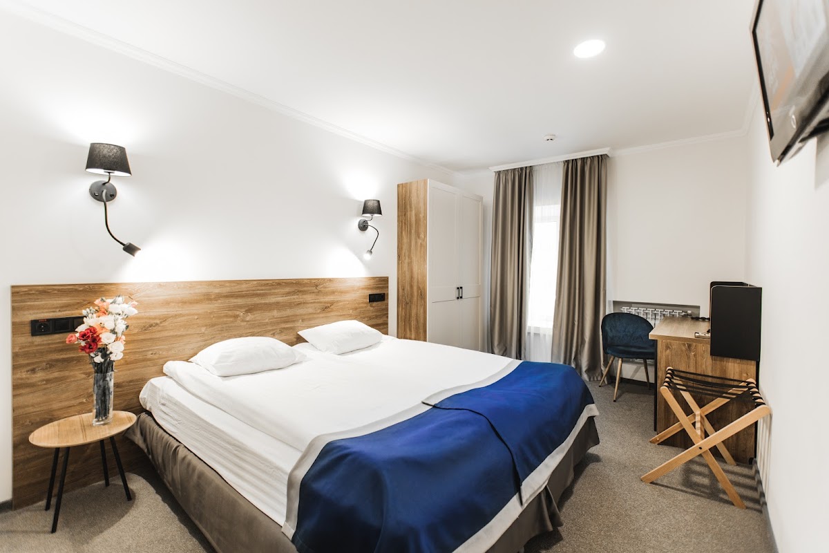 Kontynent's strategic location also offers easy access to notable attractions. A short stroll leads to the V. V. Vereshchagin Mykolaiv Art Museum, a treasure trove of art and culture. The Museum of Shipbuilding and the Fleet is also nearby, celebrating the maritime history of the region. Families can visit the Fairytale park, known for its imaginative playground equipment, ensuring enjoyable moments for children.
